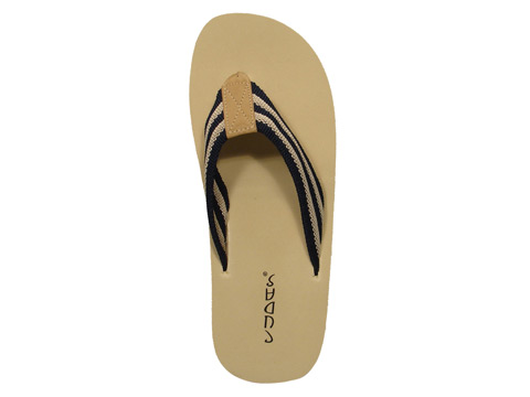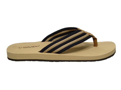 Wide striped canvas upper.