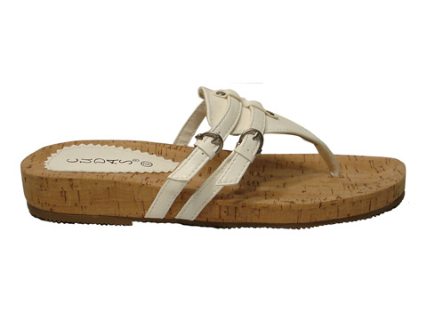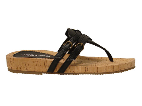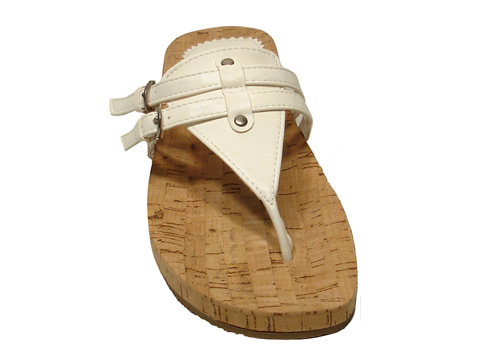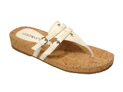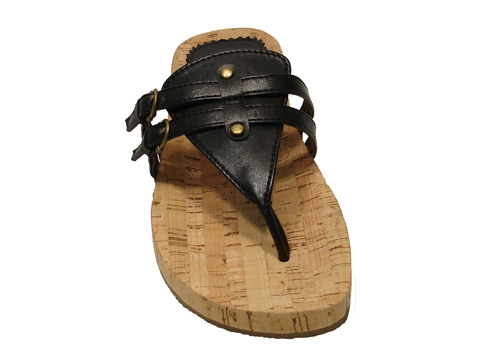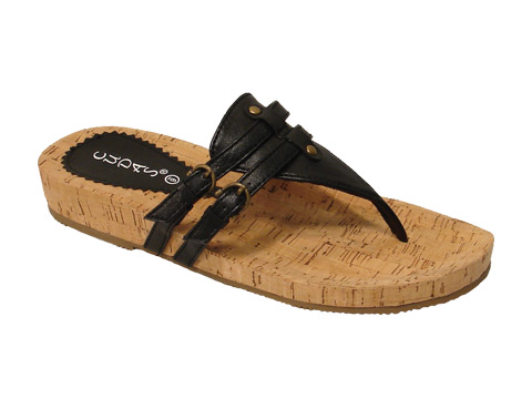 - Cork footbed two buckle thong.