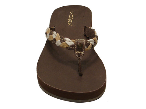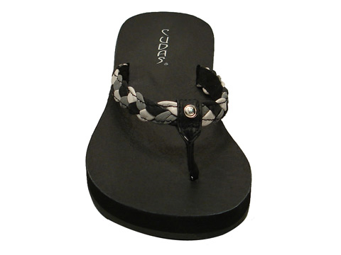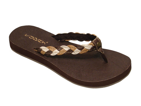 Woven leather upper thong.